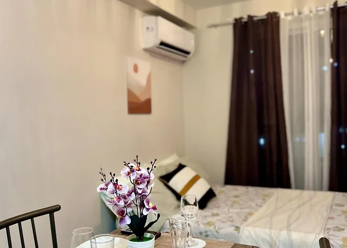 Das Studio Retreat With Balcony And Pool bietet seinen Gästen die Annehmlichkeiten von Selbstversorgern, wie eine Küchenzeile und einen Essbereich. Der Flughafen Mactan-Cebu befindet sich nur eine 15-minütige Autofahrt entfernt.